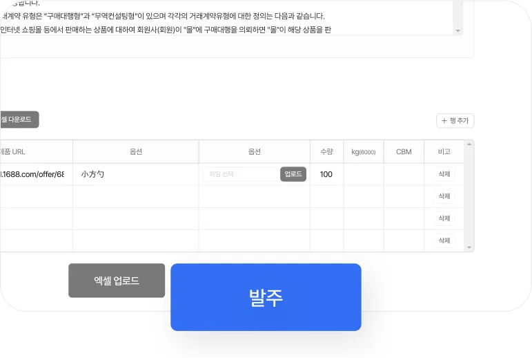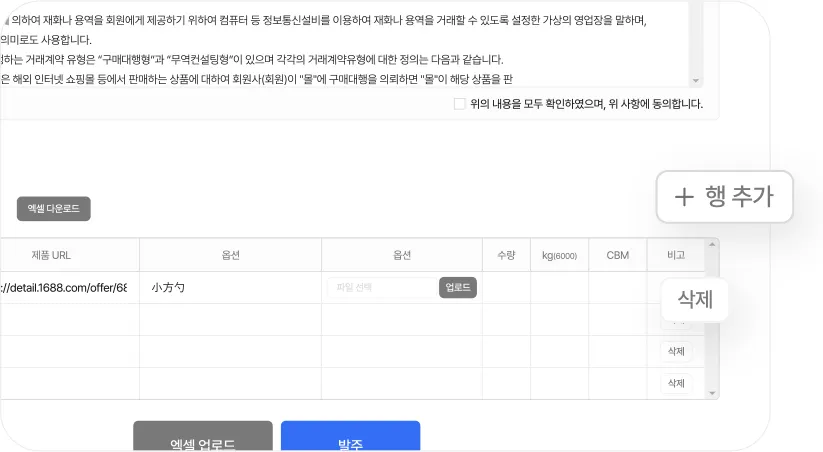 발주 품목의 수 만큼 행 추가 버튼으로 행을 추가해주세요.