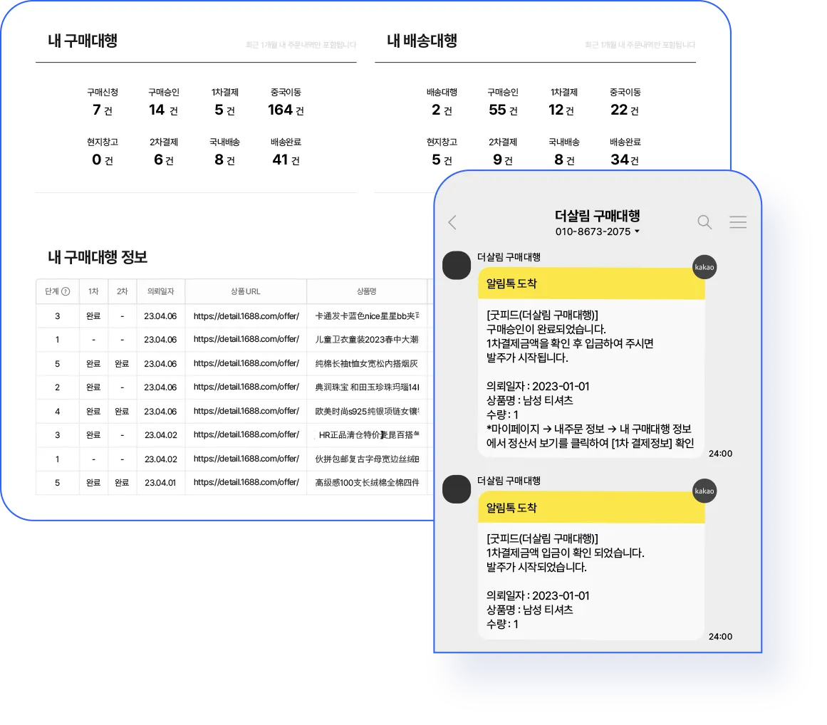 구매대행의 모든 진행상황을 쉽게 파악할 수 있어요.