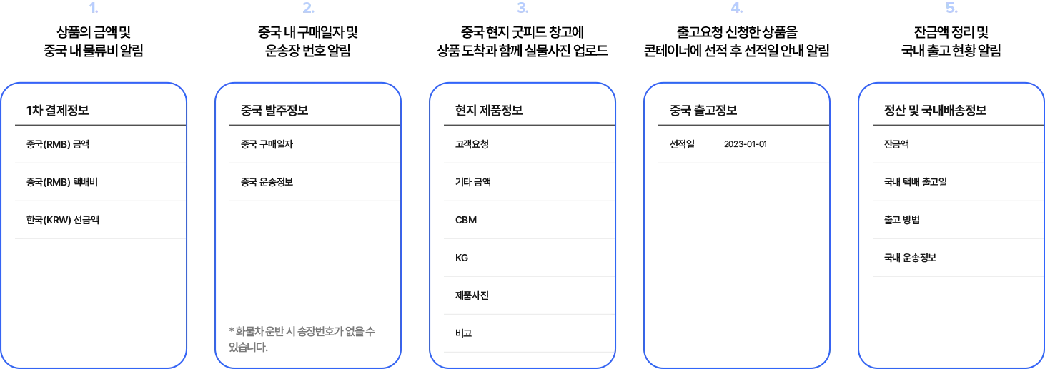 구매대행 관리 시스템을 적용한 총 5단계의 피드백으로 단계가 바뀌거나 이슈가 생겼다면