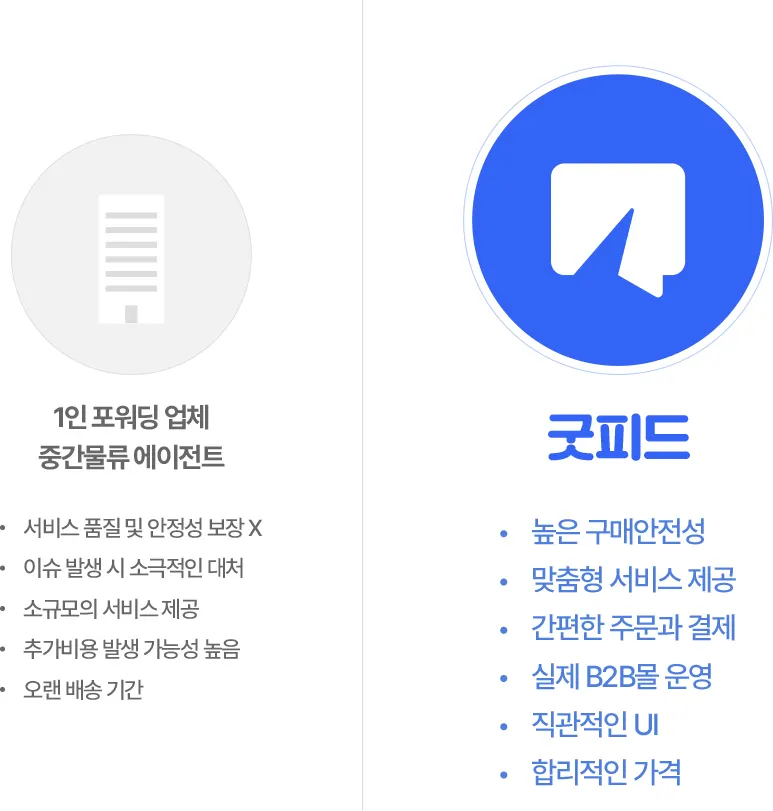 실제 무역 및 국내 유통을 진행하고 있는 굿피드는 고객께서